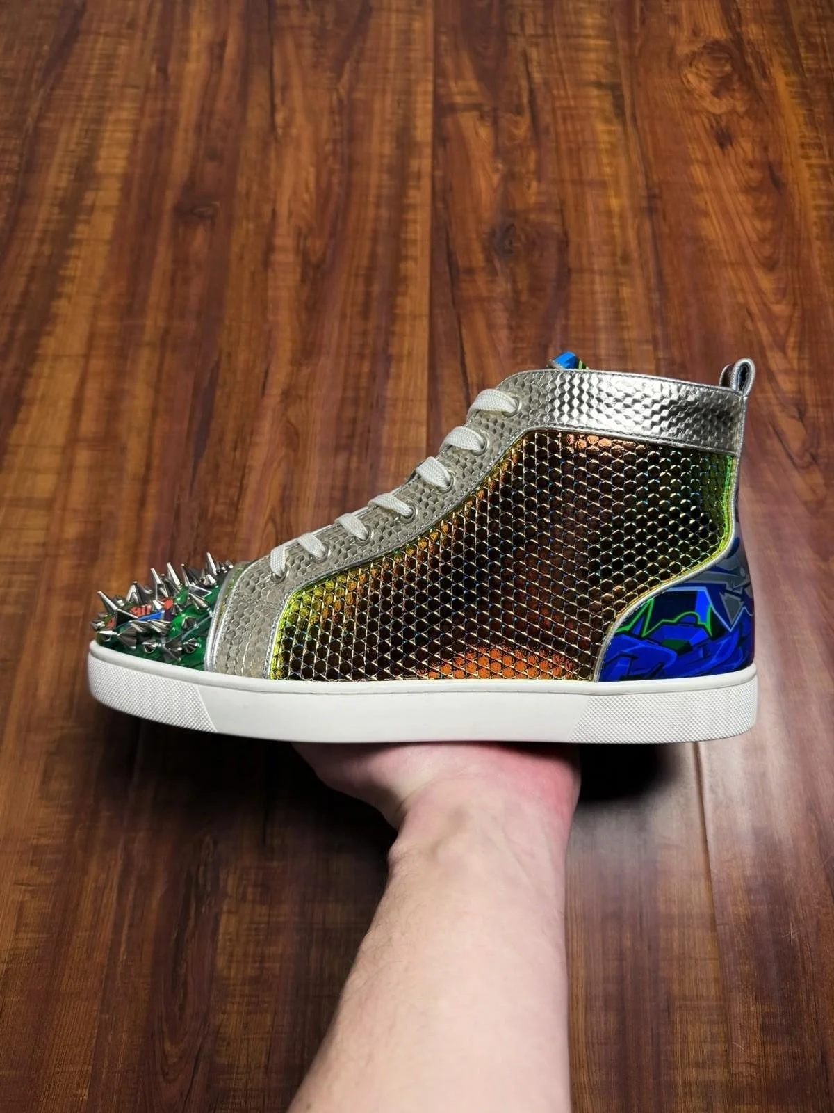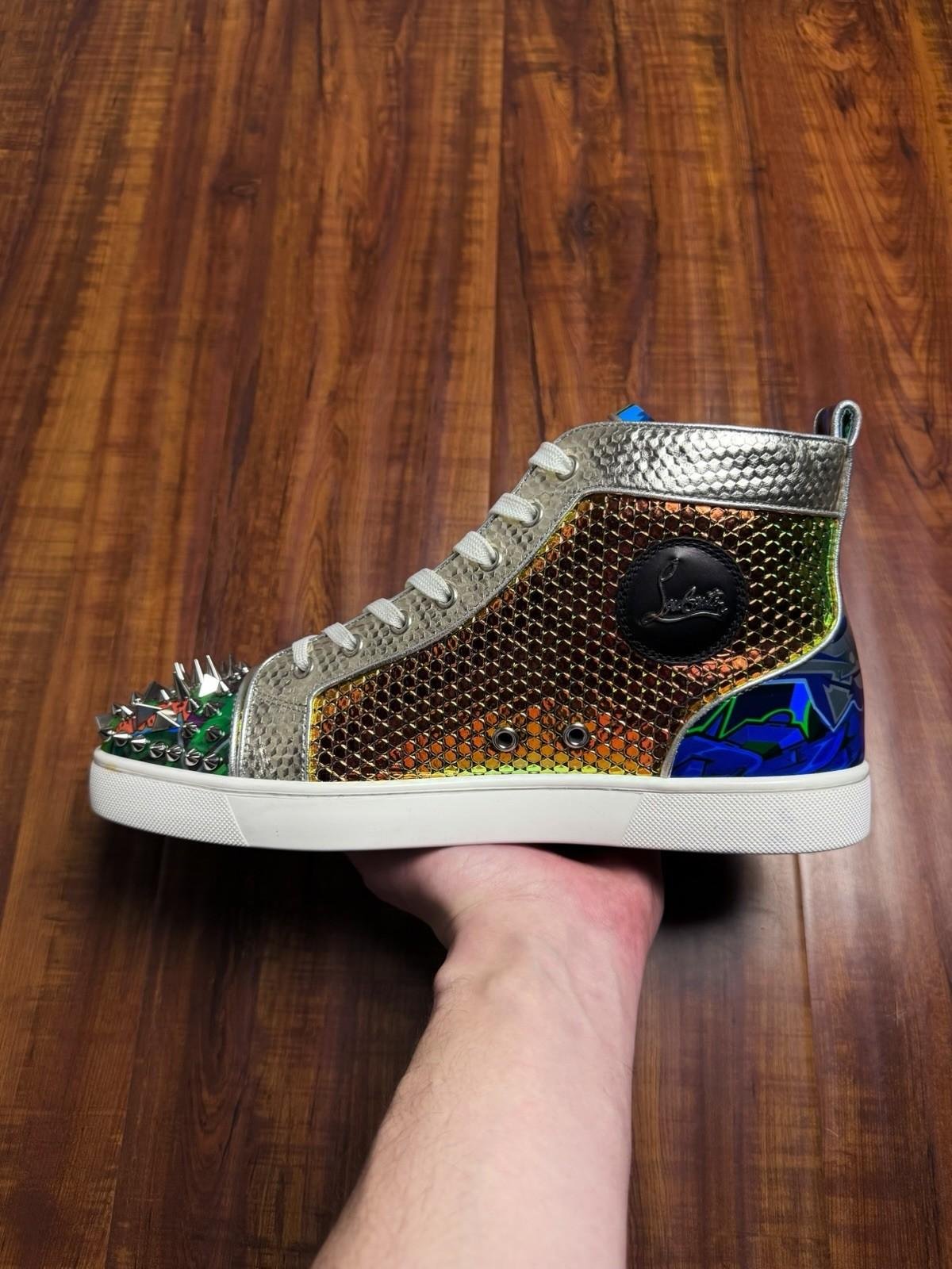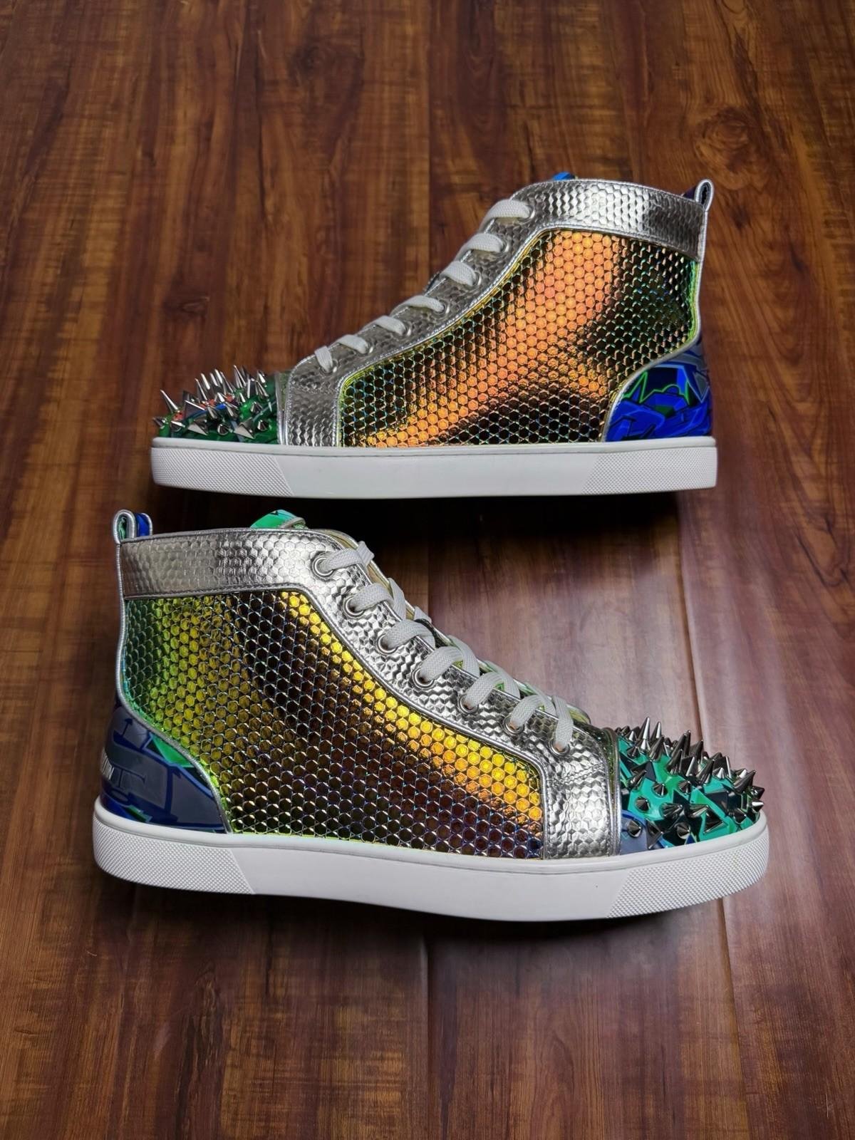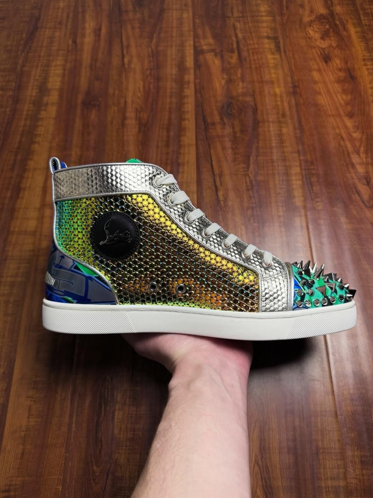 Christian Louboutin Junior Spiked Multi White Mens Sneakers - Size 43.5CL 10.5US