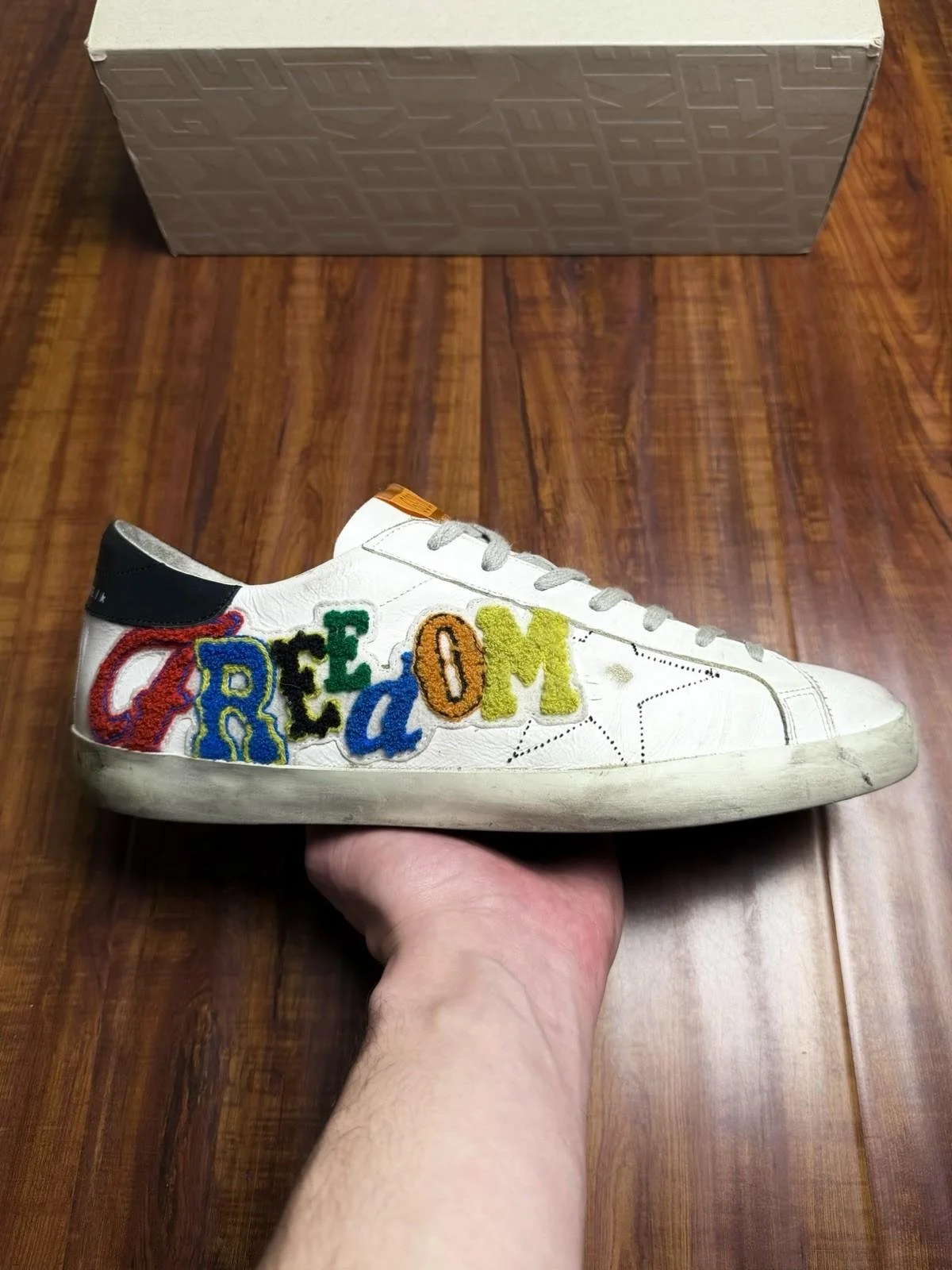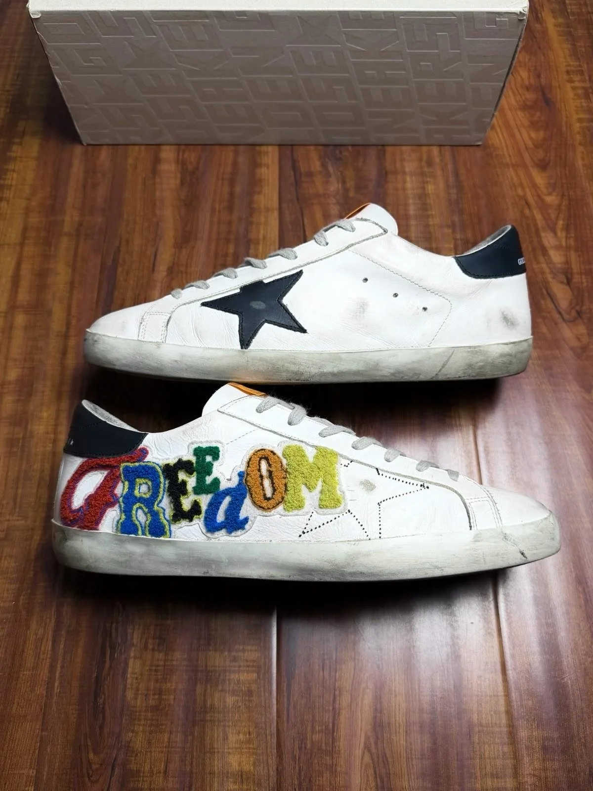 Amazing condition - Clean uppers and bottoms - Coems with Golden G. box and dust bag - Message for any inquiries