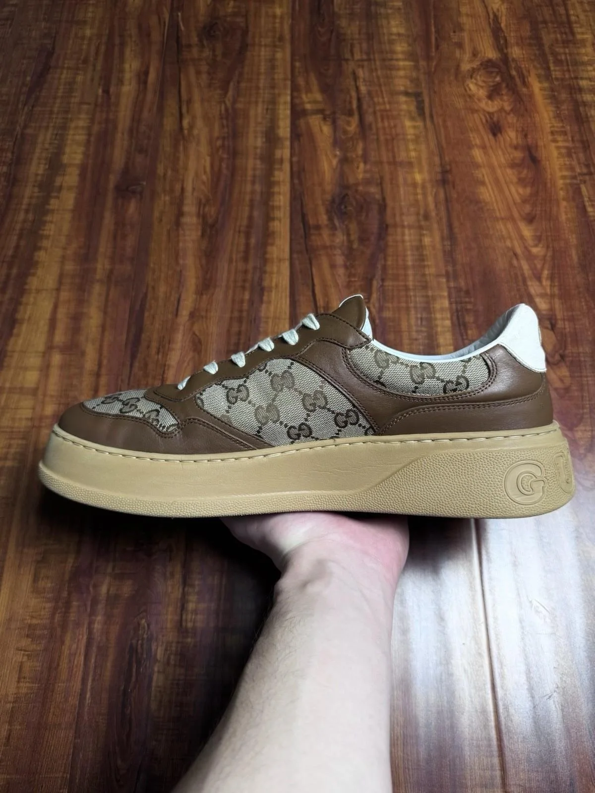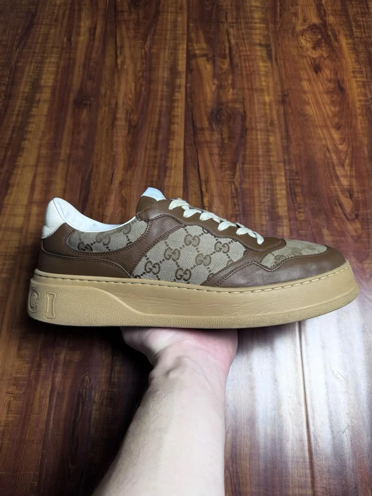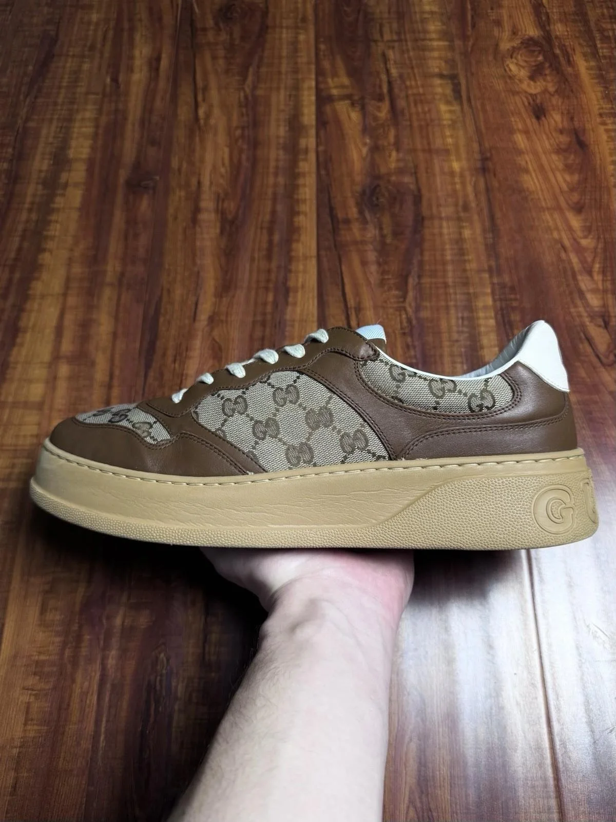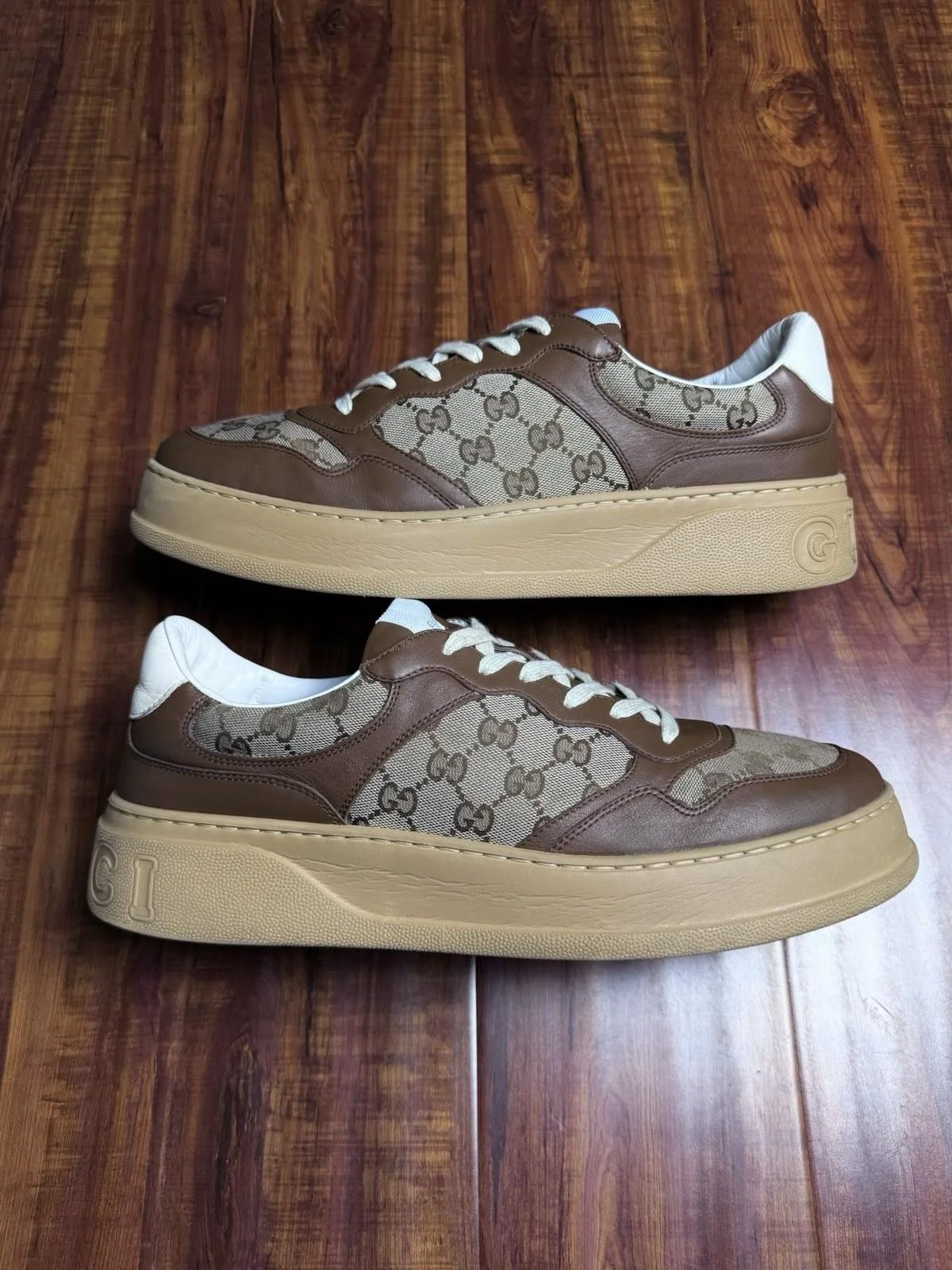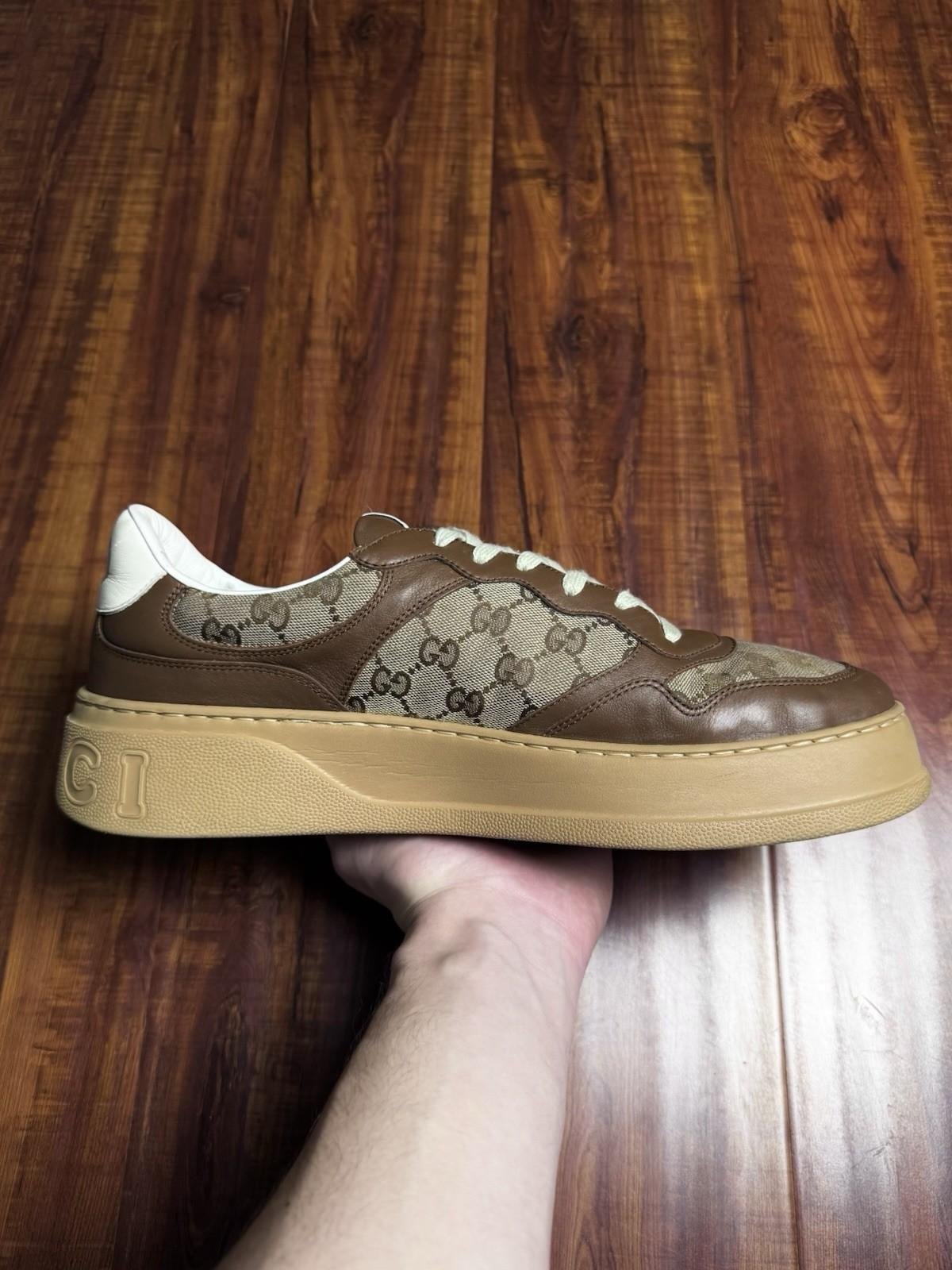 Gucci Chunky B Monogram Brown Beige Mens Low Canvas Sneakers - Size 13G 13.5US