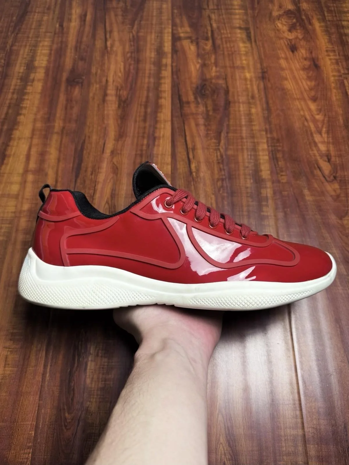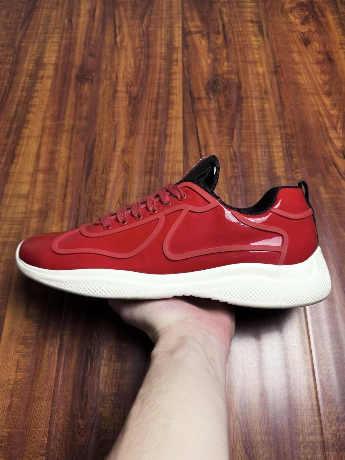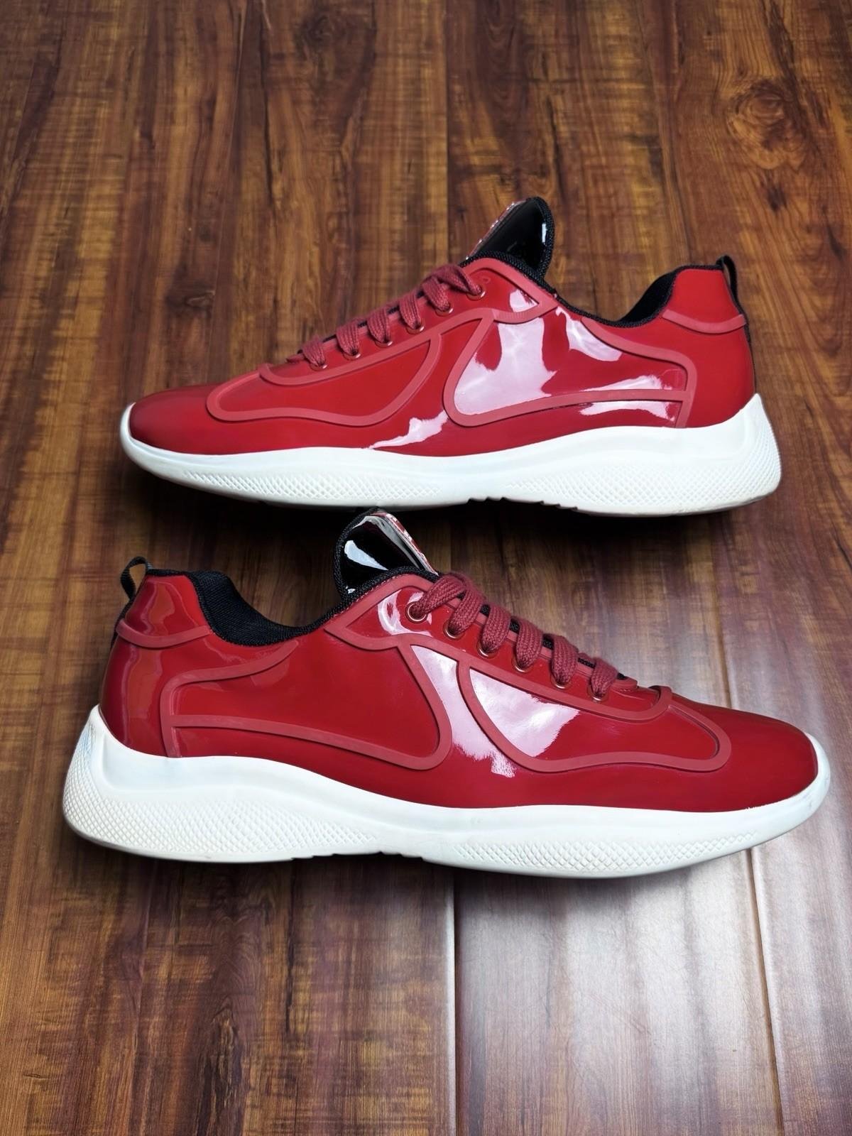 Prada American Cup Patent Red White Mens Sneakers - Size 12P 13US