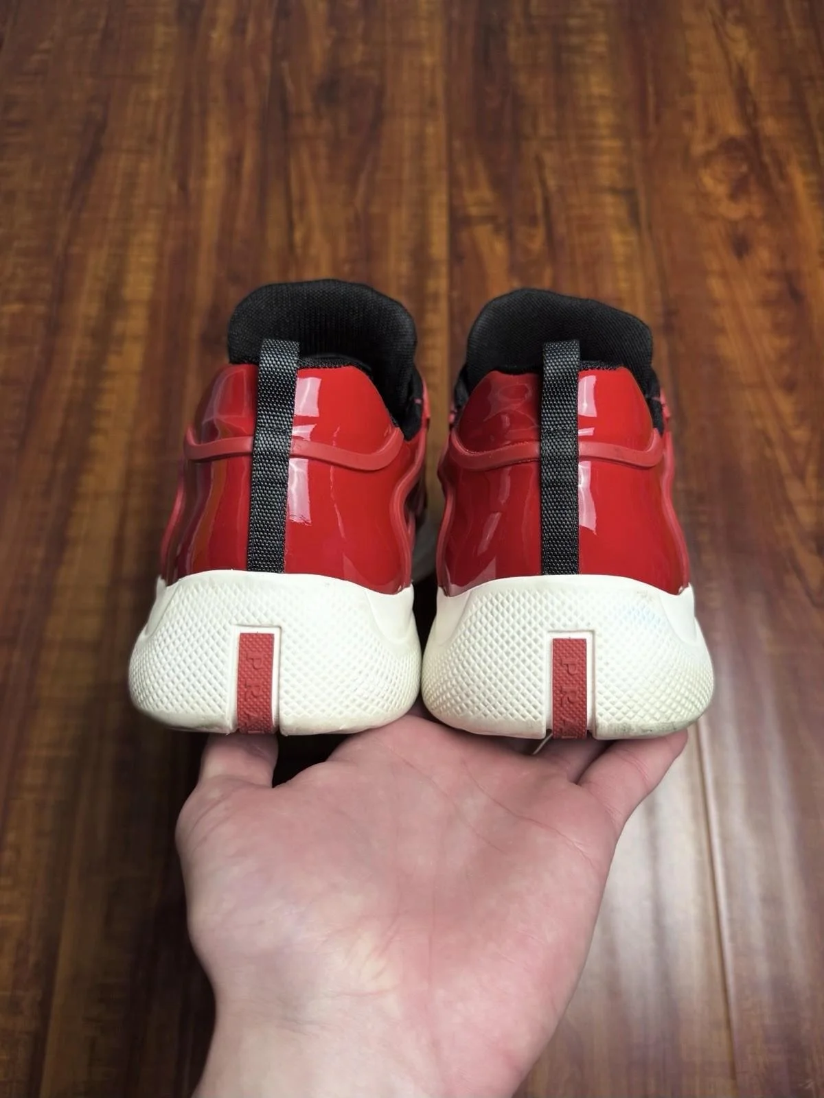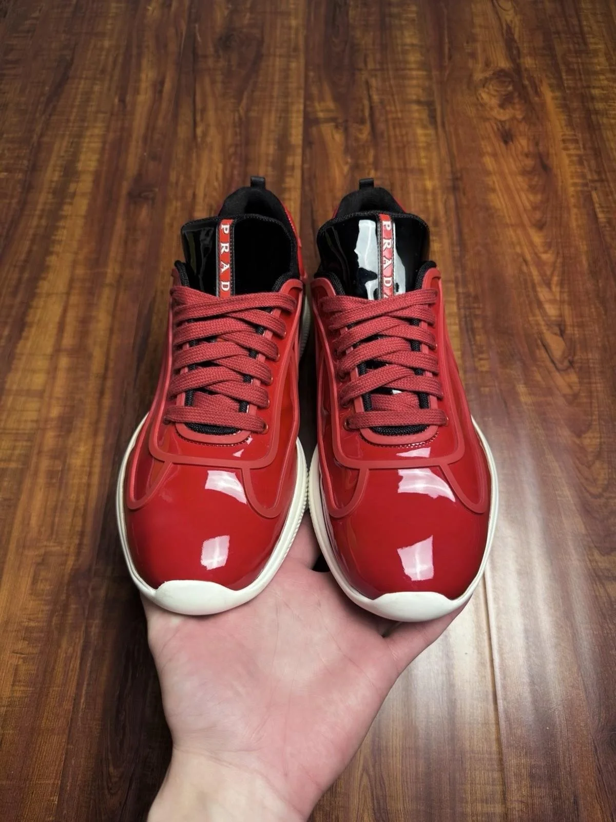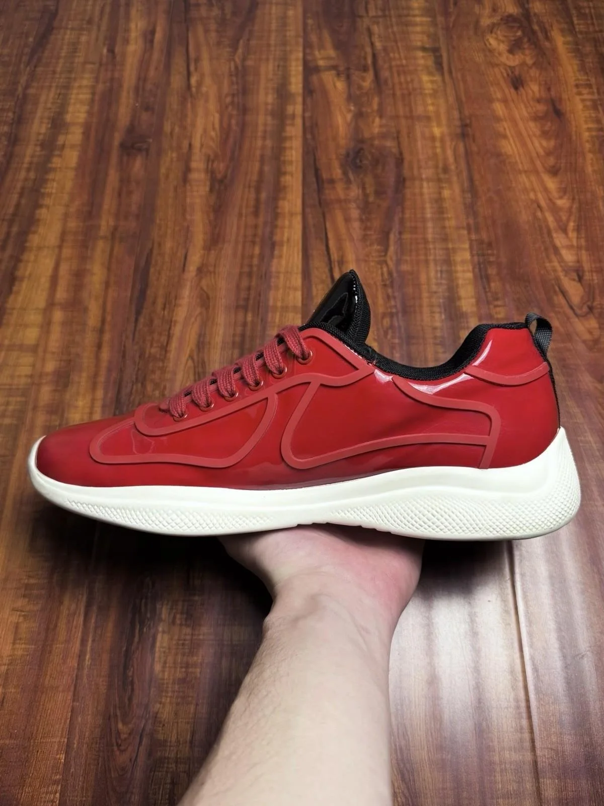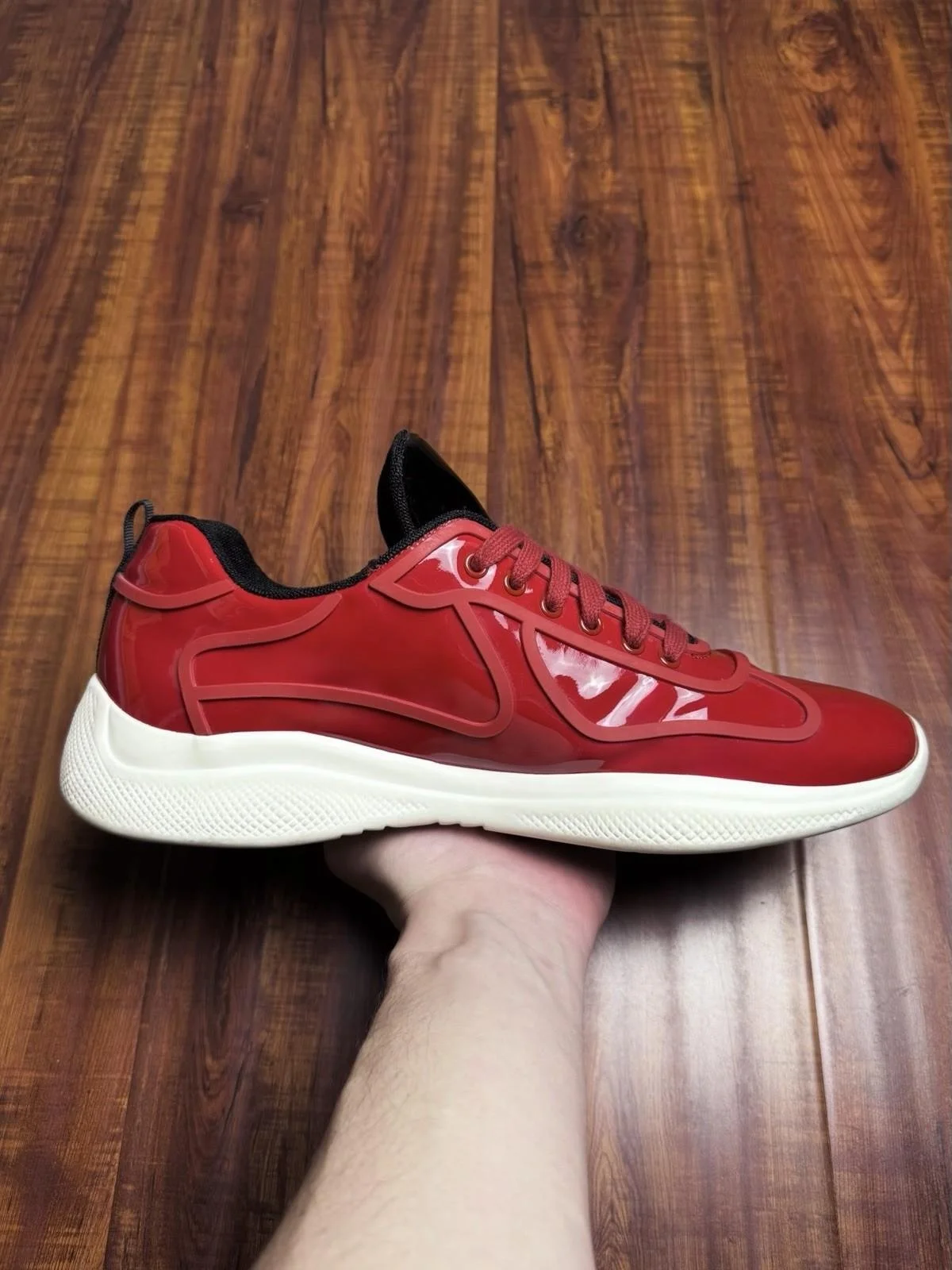 Prada American Cup Patent Red White Mens Sneakers - Size 12P 13US